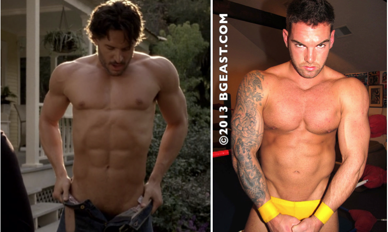 Finally, Joe Manganiello is never far from my homoerotic wrestling fantasies. He’s a recurring character in my fiction, and even more frequently appears to me in my fondest dreams. There may have never been a Hollywood actor more perfectly suited to be a homoerotic wrestling god than mountainous muscleman Joe. In fact, I struggle to imagine who could manage to initiate the mighty beast sufficiently. Having admired the beastly transformation of Chace LaChance from tweezed go-go-boy to brutishly massive muscleman, however, I’m picturing Chace to be the one to give rookie Joe a boot to the face as the Hollywood stunner tries to stride up to the ring apron for the first time. Chace has taken some severe beatings, and I have to imagine Joe would match him muscle for muscle, and then some. But my fantasies could picture no other outcome than big, beautiful Joe flat on his back with Chace’s muscle butt planted across his face as the Hollywood heartthrob taps frantically his final submission before Chace strips him naked (like we haven’t seen that before) and rides his glorious ass (okay, that would be new) as picture perfect Joe hangs onto the ropes and moans.