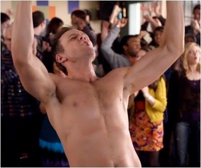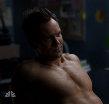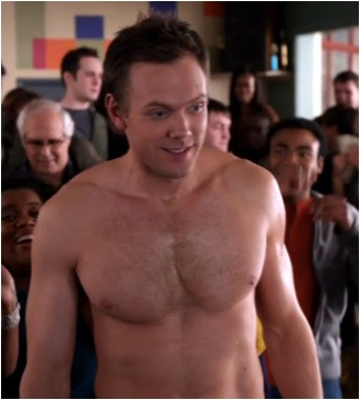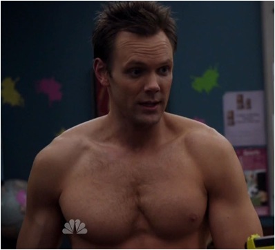Joel McHale not only graduated from an institution that I did, he also grabbed a whole lot of attention when he disrobed for the first time on his network television show Community, instantly earning him a spot in the crowded field of funny men hunks I lust after. While I don’t follow Community faithfully, it’s a sentimental favorite of mine for no other reason than Joel’s mouthwatering pecs. I think this giant funny man could have no better greeter when he enters a wrestling ring than ice-cold and entirely humorless Muscle Master Kevin, boss-in-chief and stunningly pectacular CEO of Muscle Domination Wrestling. No shit, the initial stare down would be between Master Muscle Kevin’s baby blues and Joel’s mouthwatering nipples (because you know Kevin wouldn’t deign to look up). The muscle master very well might bite off more than he can chew in ripped comedian Joel, who I think harbors the deep cynicism of a serious heel-rising. But I have to think even with the size disadvantage, Master Muscle Kevin would slowly beat the tallboy down to size, humiliate him, terrify him, and teach him crucial lessons Joel would need to learn to own the ring as the heel he harbors deep inside.