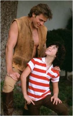 I was just about the age of young Meeno Peluce when he starred opposite Hexum in the very short-run television show Voyagers. So I was the target audience (in more than one way, I’m sure). Peluce’s character was the nerdy kid who Jon-Erik’s character came to rely on as he traveled through time, getting the both of them into all sorts of adventures. Jon-Erik didn’t really know how to use that little pocket-watch/time traveling device, so Meeno had to operate it for him. Meeno was the brains and Jon-Erik was the brawn (and I mean brawn!).