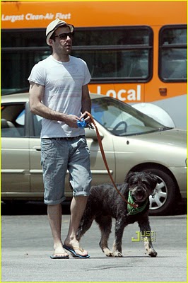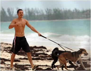 A beautiful man who loves his dog is incredibly hot. A hunk with other animals simply doesn’t do it for me. George Clooney and a pot-bellied pig is more creepy than sexy to me. And don’t get me started on cats. But a gorgeous man with a dog gets his sexy-quotient (SQ) multiplied by at least 10. If he’s shirtless as he’s walking his dog, like Orlando Bloom here, his SQ is multiplied by 20. If it’s a terrier, I have to adjust myself.