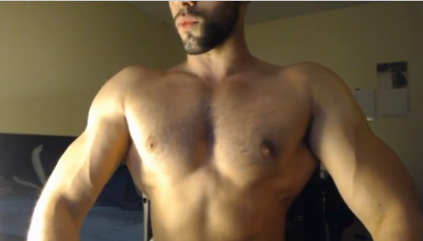Kevin: The nips were a genetic gift, but the thick, striated, and often hairy chest I’ll accredit to lots of hours in the gym. I’ve always strived for a nice V shape, a powerful torso cascading down into a thin waist. Muscle worshippers wont miss my shredded tris, or built back either, especially when they’re being used to make someone submit!