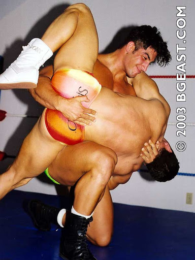 All of this speculation, proposal and prognostication sheds light on what I assume must be a nearly universal mental exercise that wrestling kinsters play: the fantasy homoerotic wrestling card. At least, I’ve been playing that game for as long as I’ve been erotically captivated by wrestling. I love that these virtual connections available to us now, like blogs and emails, give us the opportunity to compare notes. So, in addition to a Cage on Jake Jenkins ring strip battle, here are the current top 3 fantasy league homoerotic wrestling matches on my scorecard: