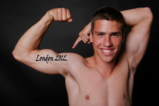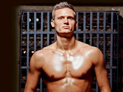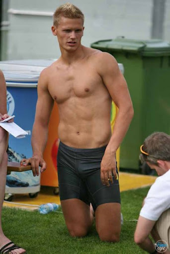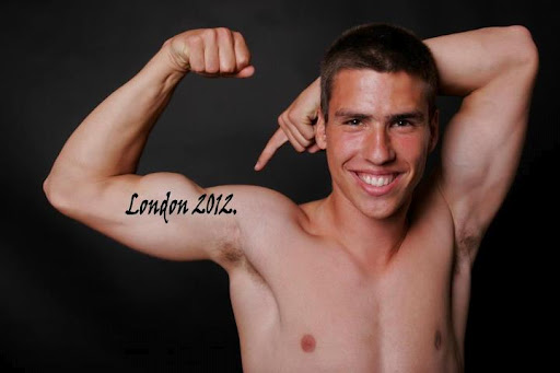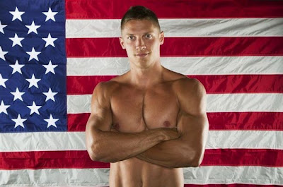 The Olympic stadium lights up with camera flashes as American hunk Trey Hardee jogs across the track and approaches the ring in the infield.  The lean blond hunk leaps up to the ring apron and steps through the ropes.  The roar of the crowd jumps a dozen decibels when he climbs up to the nearest middle turnbuckle to shrug his sculpted shoulders out of the straps of his red lycra singlet.  The tallest man in the competition, Trey spent the first few years on the world stage getting his skinny ass beat relentlessly, so he’s in London having packed on more muscle than ever before. His smooth upper body is ripped like an anatomy chart as he slowly peels the fabric down his torso, revealing inch by inch his sweet, golden pecs and rippled abs.  His newly ripped physique directly translates into a supremely cocky attitude.  Bare chested, the smooth stud flexes, bringing the fans to their feet.