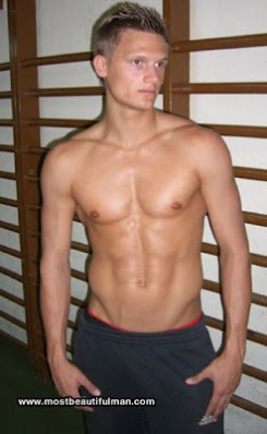 Roman is giving up 4 inches in height, 15 pounds in weight, and 10 years in age to his competitor who comes sprinting across the track and bounding into the ring to the roar of the crowd.  German decathlete Pascal Behrenbruch  is long, blond, stunningly smooth and tanned.  He wears metallic gold bikini trunks that don’t nearly cover the expanse of his hard, athletic ass.  For that matter, his golden pouch is inadequate to keep his shaved balls under wraps as well, particularly as the beautiful goldenboy climbs up the turnbuckle and pumps his right fist in the air to get a rise from the crowd.  Apparently, the German is unaware of the risks involved in turning your back on your opponent, because he never sees Roman slowly stroll up from behind and drive his right fist straight up between the German’s outstretched legs.  The long, lean goldenboy’s knees buckle, but before he falls the powerful Czech quickly hooks his right arm between Pascal’s legs.  He drapes the German’s toned body backward across his broad shoulders.  The stands erupt, a nearly riotous mix of outrage and elation as the Czech muscle man yanks down on Pascal’s legs and neck, bending the gorgeous boy’s back around his neck.  Pascal’s screams are high pitched and frantic.  Roman bounces on the balls of his feet, parading his prey across his shoulders for the viewing of the raging crowd shocked by the speed with which a world class competitor, a semi-finalist in the Olympics, is completely incapacitated and utterly humiliated.  Roman shows off in the center of the ring, doing leg squats with his 207 pound German barbell racked like dead weight across his shoulders.  The Czech adjusts his grip, yanking down on Pascal’s chin with one hand while sliding his other hand underneath the German’s metallic gold pouch to crush his testicles.  The German writhes and kicks, flailing his arms, but it takes no more than a half a minute more before Pascal’s screams of submission are heard punctuating the disbelieving gasps from the crowd.  It’s the fastest victory in homoerotic wrestling Olympic history. The Czech beast simply shrugs his shoulders and lets Pascal roll off, tumbling in heap to the mat behind him, as Roman pumps his fists and roars at the crowd.