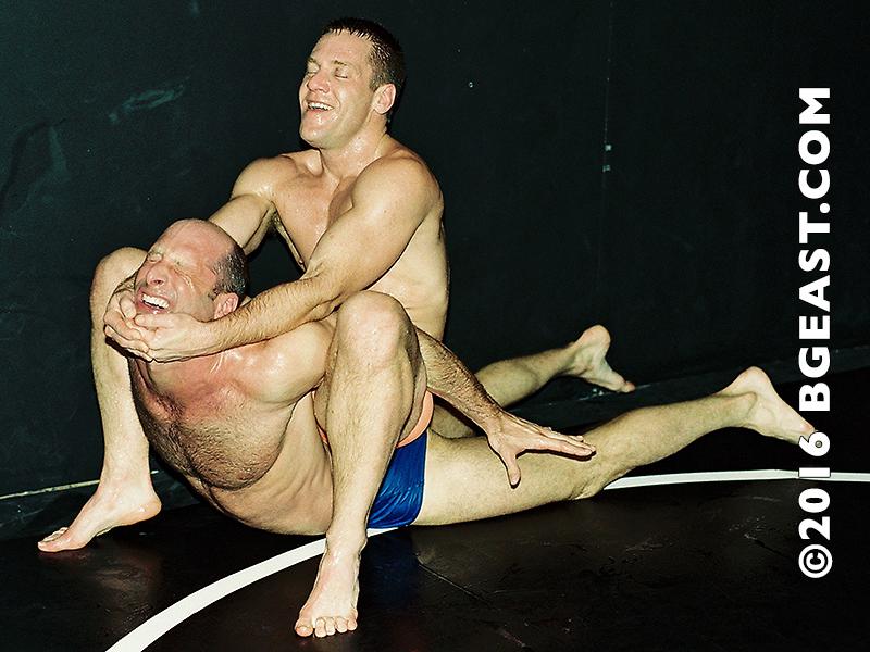 Scott’s first words to me were, “I’m impressed, Bard. You actually showed up.” I get where that comes from, of course, but I also was thinking, fuck if I’d be anywhere else in the world, right now! I’ve got precious little direct experience wrestling, mind you. Of course, I’ve been obsessed with homoerotic wrestling my entire adult life (and more than a bit of my pre-adult life, honestly). But I was seriously in suspense about how this would go, facing down a fierce hunk with such an extensive, well-documented wrestling resume. So, just to break the ice and keep it real, I called attention to that fact. As we were both stripping down to briefs, I just breathed in deeply and named it, honestly admitting that this was a dream come true, and I was already a winner for getting to experience it. “You’re bigger than I am, and you have a boatload more wrestling experience than I do, obviously,” I said. He shrugged, like the it was no big deal. “Which makes me think,” I went on, “that the pressure’s really entirely on you. Like, how fucking humiliating would it be for Scott Williams to submit to a faceless blogger with almost no experience?”