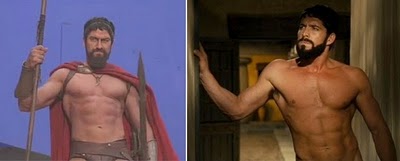 My personal infatuation with the standing headscissors was featured in one of my favorite pieces of celebrity homoerotic wrestling fiction from my collection, the Producer’s Ring. The match pits Scottish bull Gerard Butler out to wipe the smirk off the face of English beefcake, Sean Maguire, after Sean’s sweetly humiliating parody of Gerard’s muscle-fantasy performance in the movie 300.