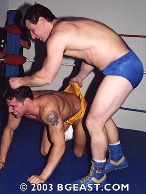 Fuck, that’s hot! Someone at Wrestlefest New York told me last year that he thought Kid Vicious was the actual musician behind these BG East trailer soundtracks, but Kid Vicious told me they were produced by a friend of BGE, but not him. I feel like whoever wrote and produced these has got to be in the club with us, right? I mean, I could be totally wrong, but they *feel* like the musical transcription of an erotic reaction to incredibly hot wrestling.