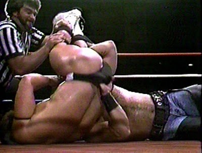 I’ve blogged about this before, but let me just say that I LOVED those fucking trailers. Honestly, some of the worn out spots in my VHS tapes were actually during the trailers at the end of the tape. They were these hot, sort of impressionistic short outtakes from full-length matches. Like, they’d have a five second clip of one sweat soaked muscle hunk cranking on a Boston crab, and then a quick cut to later in that same match when the tables had turned and the other hardbodied stud was pumping on headscissors. You couldn’t tell the plot or understand the momentum of match from these trailer, but the point was just to whet your appetite, to make you need to send in more cash and get another tape of matches. These trailers had no audio from the actual matches themselves. Instead, they had these super sexy electronic dance music scores with what can only be described as a distinct homoerotic wrestling sensibility to them.