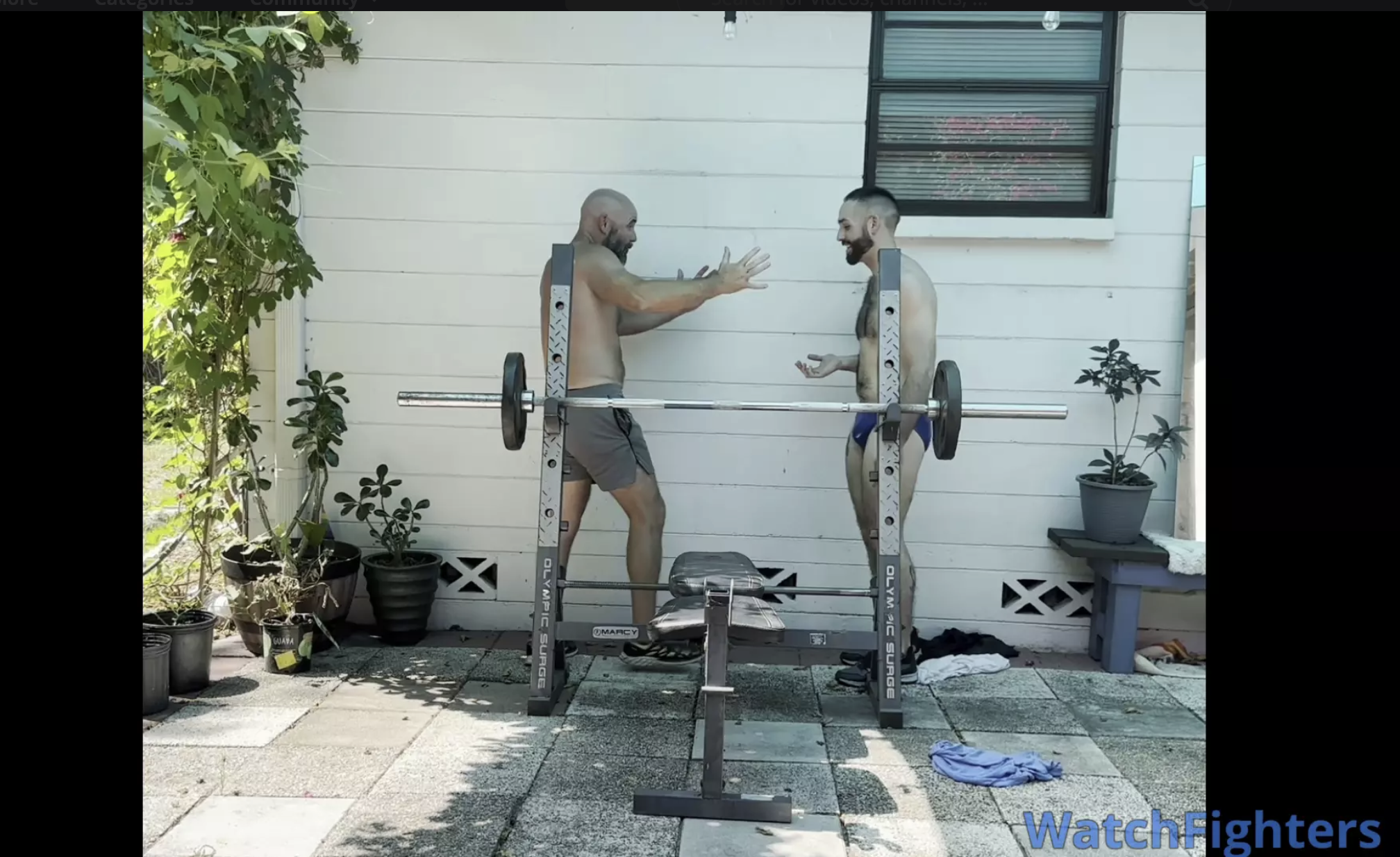 Tarz is a gorgeous beast. When I met him in February, I had to restrain myself from reaching out and palming his huge biceps straining the seams of his sexy tight t-shirt. The dude is just fucking solid and magnetic. So there’s something intensely ironic every time he calls Isaac “big boy.” This is WatchFighters, so I don’t have the ability to scratch all my itches, like looking up their respective stats. But, Isaac is solid and fit, with a sexy carpet of hair almost as on point as Tarz’ hairy muscles. But every time Tarz calls him “big boy,” it just keeps driving home the point that Isaac is way, way, WAY outgunned. The naughty spotter gets buried under an avalanche of muscle again and again, and it’s sexy as fuck. “Tell me, are you ever going to spot me again,” Tarz demands to know as he’s transitioning from a spine snapping Boston crab to a single-leg crab, so he can have one hand free to throttle Isaac’s balls. “Now,” the big man demands with cold command, “scream for me.” And fuck, Isaac does!