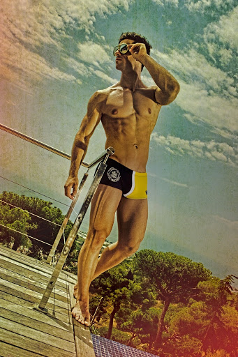 Underwear and swimwear models are populating my typical surf sites these days. Male models, even fitness boys, can tend to have relatively skinny legs. While there’s nothing wrong with lean, powerful, slender legs, I’ve got a hard spot for thick, powerful, beefy thighs. Happily, there are a few fitness models selling minuscule quantities of highly stretchable fabric who also show of gorgeous, bulging legs.  Slide Z’s face between these quads and lets hear this Brazilian fitness boy muffle the playgirl model’s screams with his sweetly bulging crotch.
