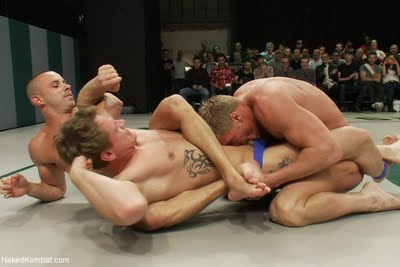 But in homoerotic wrestling, when done right, it’s incredible value added for my tastes. When a brave, cocky, impenetrable stud throws himself into the fray, gets outmatched, gets convinced that he could very well get broken, broken into, or crippled for life, the unfolding drama is sensationally arousing to me. He’s got to believe he’s going to make a respectable showing to start with. And then, incrementally, he’s got to be dragged to the despairing, horrifying truth that he’s getting owned, and his opponent is just nasty enough to seriously jeopardize life and limb. And then, that juicy, potent psychodrama has to play out on his face, in his eyes, in the rising octaves of his screams and choking sobs.