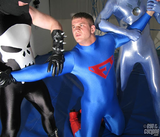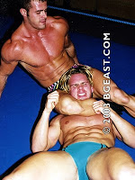 I think the morality tales of straight-up pro probably work the same way, but I think homoerotically directed wrestling has an even more salient subtext. Someone like muscle-beautiful Zack Johnathan/Vazquez getting completely taken to school by “skinny” kid Brody Hancock, for example, lets me work out all sorts of long standing “issues” I have as a gay man. Outside the ring, the most beautiful, straight-laced, used-to-getting-their-way straight boys tend to prosper and receive more than a heaping helping of social approval. But inside the ring, at least for this gayboy, there’s something deeply satisfying about seeing the classic jock pummeled. It speaks to me powerfully to see the classic cards of strength, youth, and power stacked against an overmatched opponent, who with sheer audacity and ferocity, does whatever it takes to pull the rug out from under the muscled juggernaut. The morality tale, for me at least, has more than a hint of the skinny (or fat), disregarded and underestimated sissy who spits in the face of the bullying jock and exacts humiliating revenge for getting thrown into the lockers.