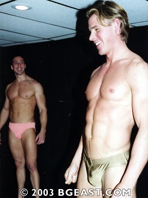 If ever someone deserved it, Troy Baker did. I happily own his debut match for BG East, in which he teamed up with his brother. Troy’s character took a little while to develop, but even in that first match, we can see the seeds of his destruction. He’s beautiful. He’s stunningly built. He’s a little slow in piecing together some wrestling moves, but he’s supremely confident that his sheer strength and bright, white smile will earn him victory. In match after match, his self-love of his own beautiful body becomes his undoing, and there’s just nothing “righter” than watching him think that he’s got it in the bag, only to find himself suffering and destroyed at the hands of an “inferior” opponent.