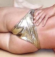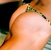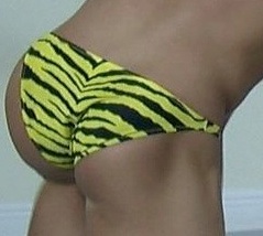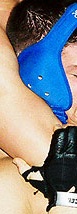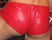 It was warm enough for short sleeves and shorts yesterday, so I was delayed in my weekly Name That post. The clouds have set in again, so I have renewed focus (and a sunburn). In cashing in his prizes as winner of last week’s Name That Cock quiz, Topher came up with an excellent suggestion for the theme for this week’s quiz: Name that Gear. Of course, there’s iconic gear that seems indelibly linked to one particular homoerotic wrestler. Think Brad Rochelle looking over his shoulder at the camera, his gorgeous glutes packed into trunks with the word “SPEEDO” stitched across the ass. So now that Brad’s off the table as a possible answer to this week’s quiz, here are some close ups of some other, perhaps less iconic, gear that I associate with one particular homoerotic wrestler or another. Just by way of hints, all of this gear shows up more than once, helping to build the association between the wrestler and the gear. So none of this week’s answers will be one-hit-wonders. Again, with all credit to Topher for the concept, let’s get down to business and play Name That Gear.