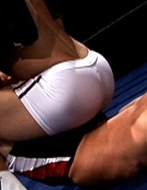 Here’s where things get tough, and the truly gifted students have an opportunity to shine. Things get a little esoteric from here on out, so you’ll just have to bear with me. This wrestling ass made me sit up and take notice when I saw it the first time. The wrestler is unconventional, incredibly strong, and appropriately named. Here’s where things get possibly misleading with the clues, though I seriously don’t intend it: I’ve seen him wrestle twice, but I can only remember where I’ve seen him wrestle once. A little piece of trivia that absolutely will not help you: seeing this hunk wrestle was what inspired me of the need to start a homoerotic wrestler of the month title, though he himself never possessed that title (told you that wouldn’t help you). 5’8,” 190 pounds of gorgeous muscle, and he laughs evilly with every awesome humiliation he inflicts on his opponent. Hot. Hot. Hot.