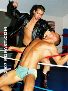 I’m not sure what my point is here, other than to say I’m into wrestling. Maybe not the way you are, or for the same reasons. I’m into wrestling, and it’s a primary turn on for me. In into wrestling, and its homoerotic text and subtext give me a lot of pleasure. I’m gay, and turned on by wrestling, and turned on when I’m wrestling. I’m into wrestling, and I reject anyone else trying to tell me to pipe down and take that “naughty talk” out back. I’m into wrestling. Deal with it.